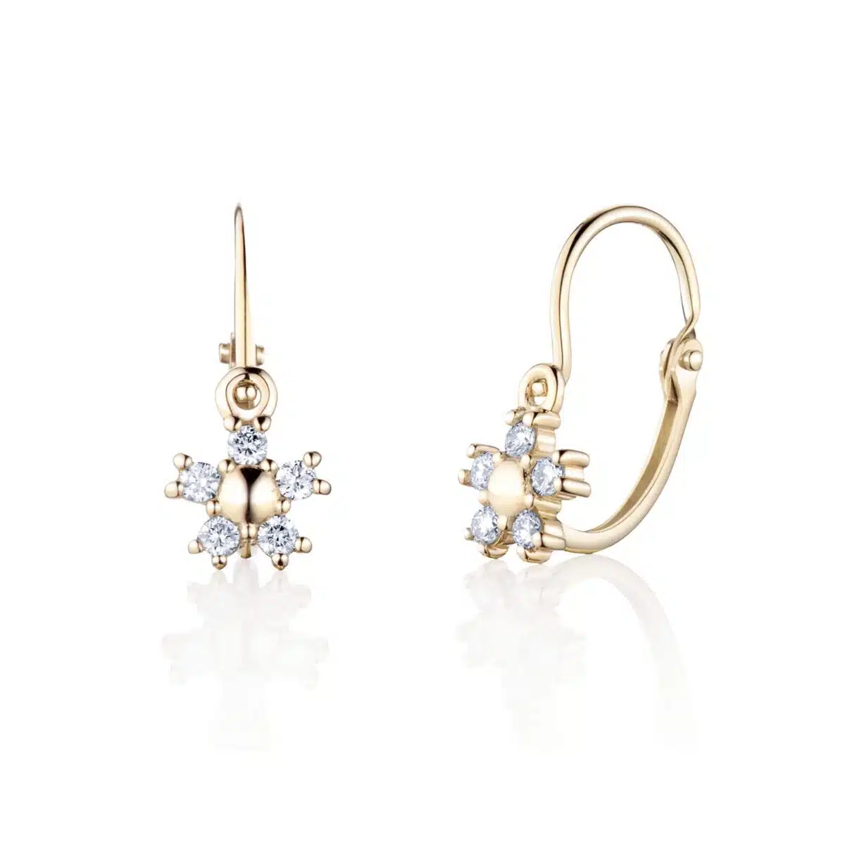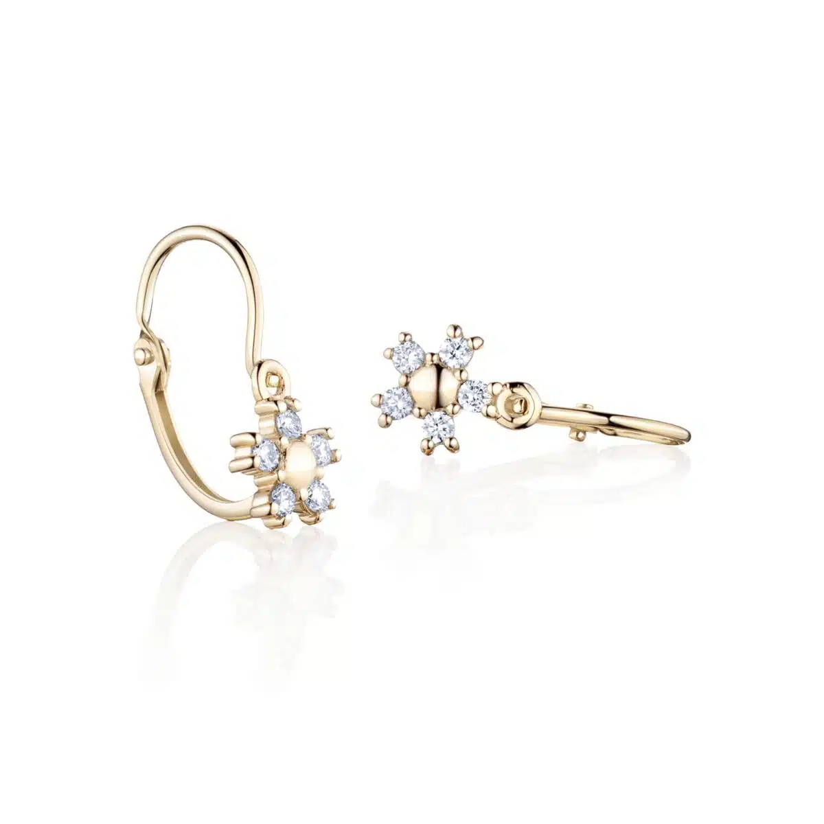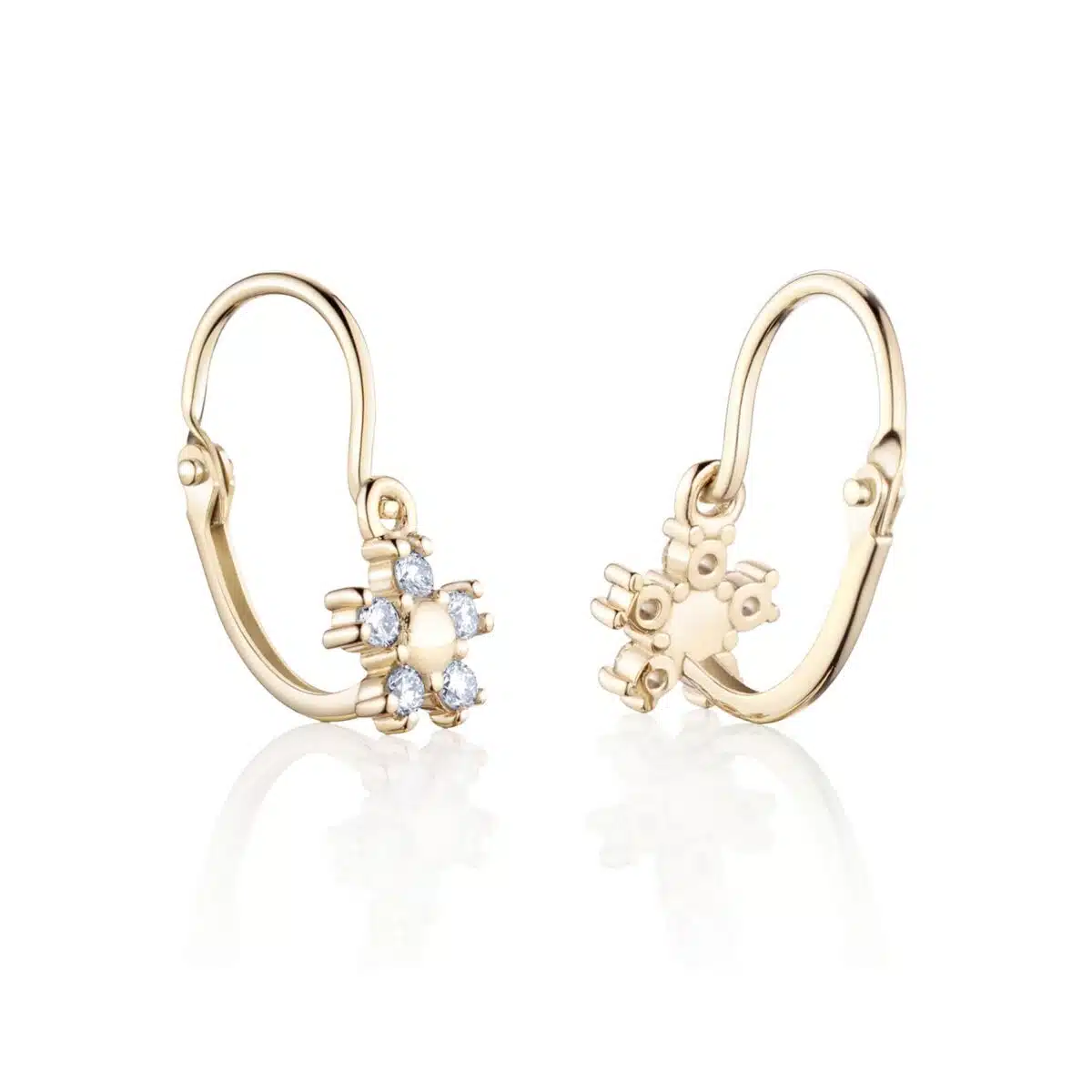 Detské náušnice Lily sú ideálnym doplnkom pre vašu malú princeznú. Ich štýlový dizajn a bezpečné zapínanie, z nich robia skvelý prvý šperk. Náušnice zdobené diamantmi, osadenými v 14 karátovom zlate, zabezpečia, že každé ráno bude pre vaše dieťa výnimočné a plné obdivu.
