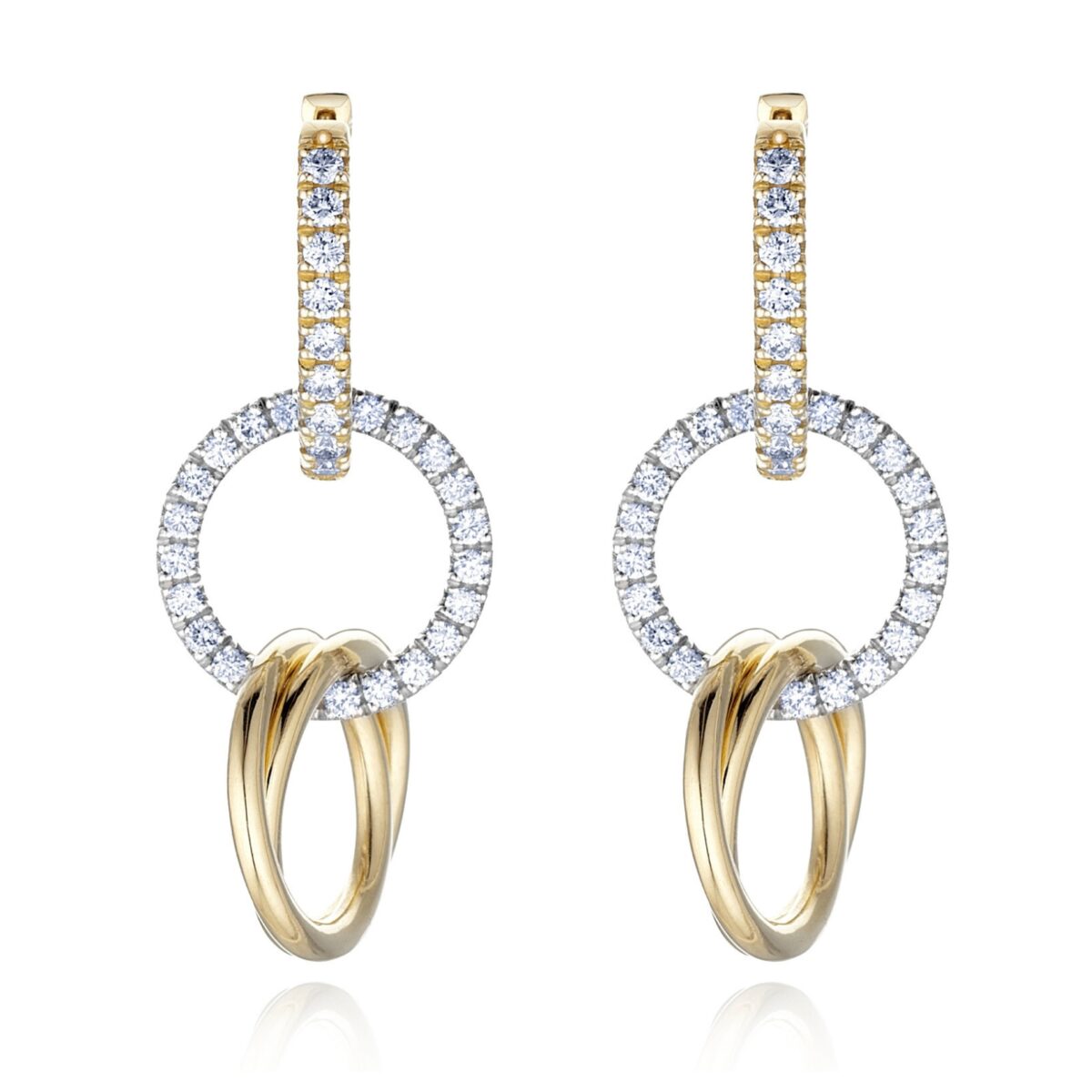 Elegantné a moderné, práve tým sa pýšia náušnice „Céline“ ozdobené žiariacimi diamantmi, ktoré sú osadené do 14 karátového žltého zlata s rýdzosťou 585/1000.