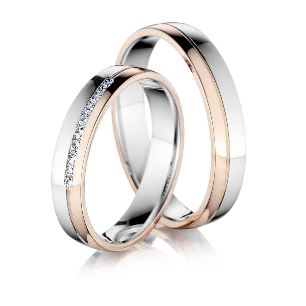 Kombinované svadobné obrúčky Abigail sú zdobené líniami po celom obvode. Obrúčky sú široké 4 mm. Priemerná spoločná hmotnosť prstienkov je 7,6 g.