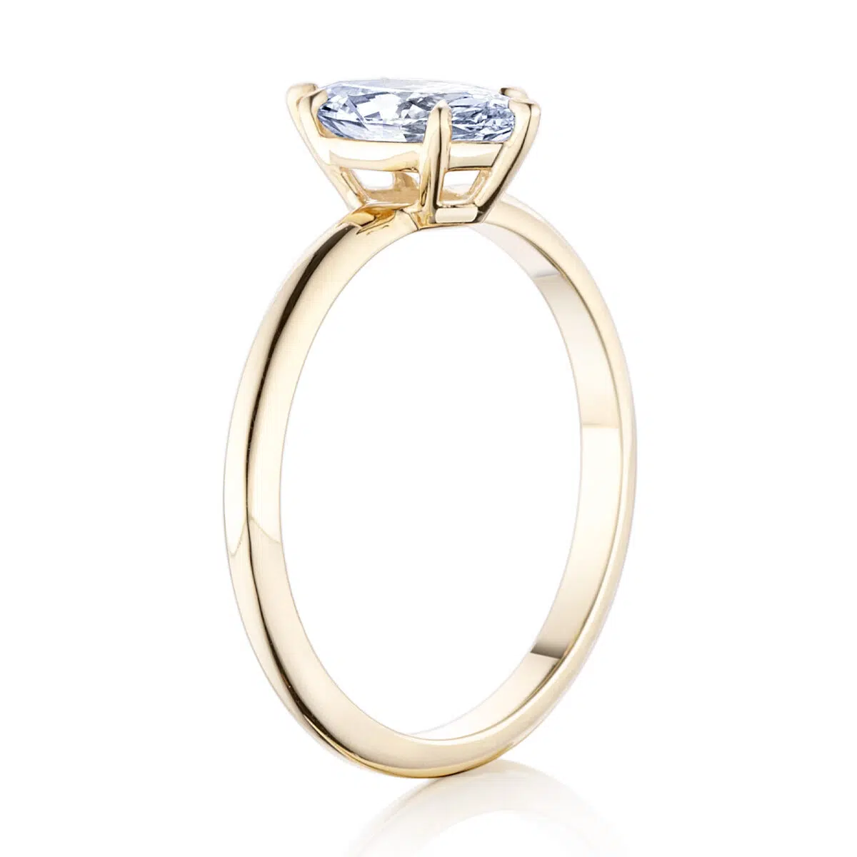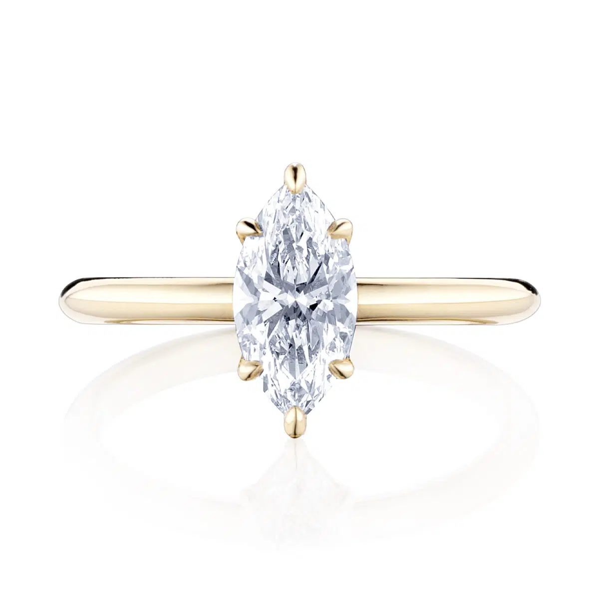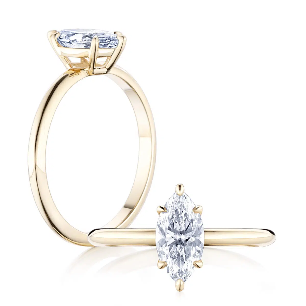 Tento model je osadený 1 karátovým kameňom vo výbruse markíz, ktorý je známy svojím pretiahnutým tvarom s jemne zašpicatenými koncami. Výbrus „marquise“ vznikol vo francúzskej kráľovskej ére a dodnes patrí medzi najsofistikovanejšie diamantové výbrusy. Opticky zväčšuje kameň, predlžuje prsty a vytvára mimoriadne elegantný efekt na ruke.